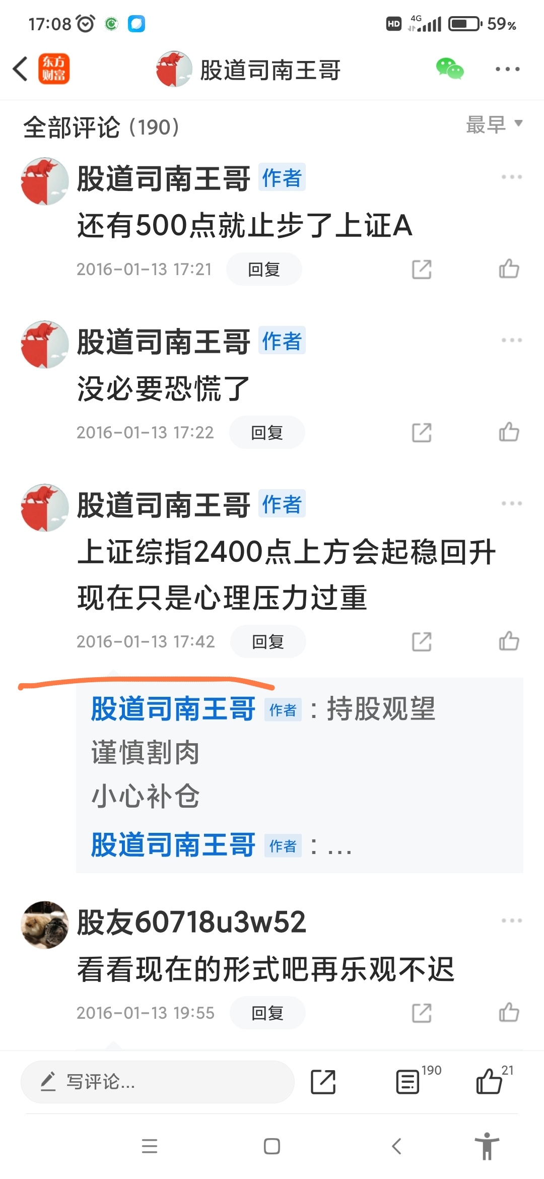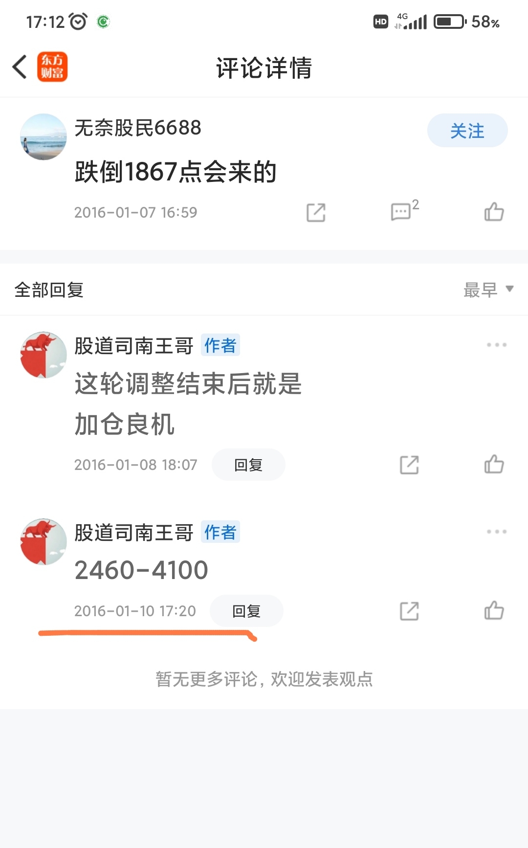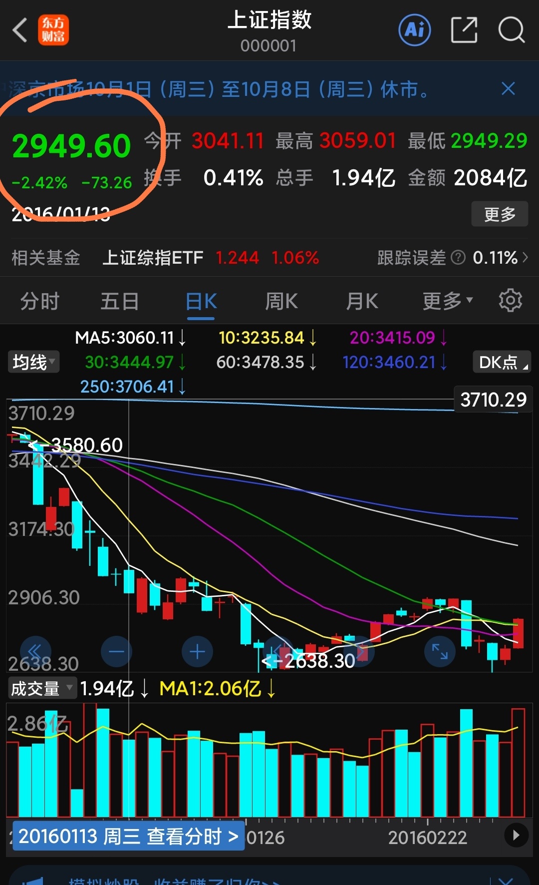 2016年一月发帖时上证指数在2950点附近