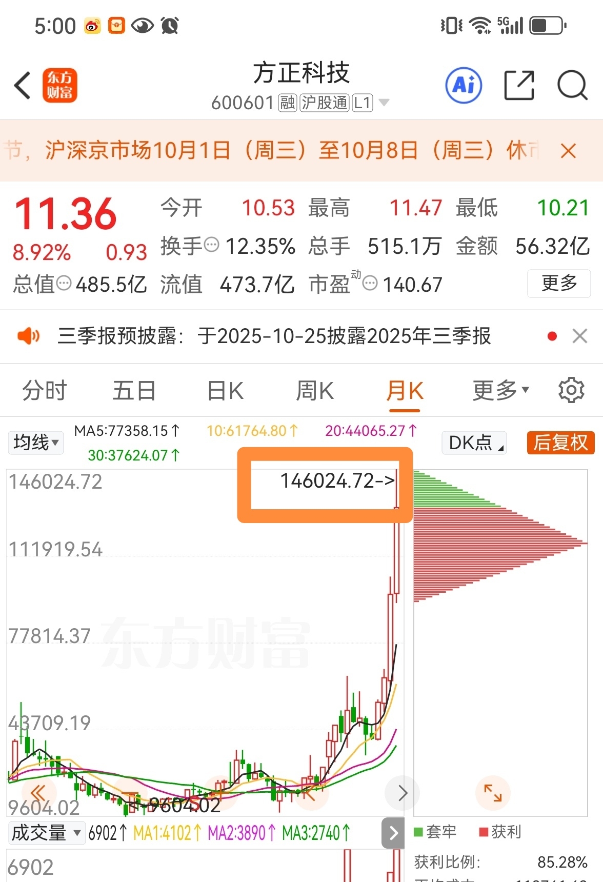 相比14万146024元1股的方正科技2千多倍(寒王现在才20倍)寒武纪涨到2万