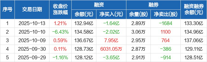 寒武纪:融资净偿还1.64亿元,两市排名第20(10-13)