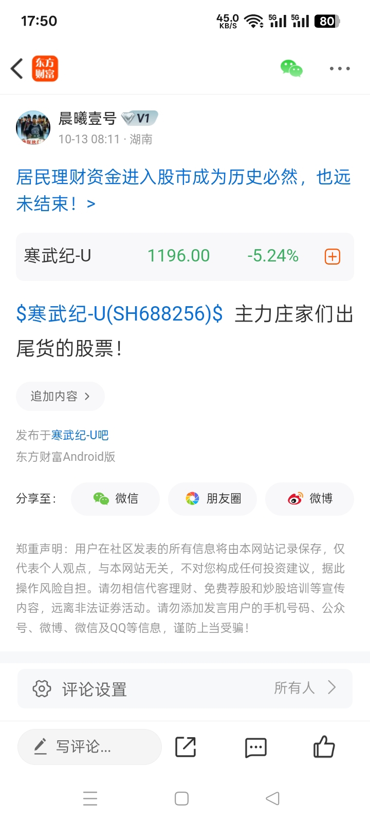 温馨提示: 1.根据《证券法》规定,禁止编造、传播虚假信息或者误导性信息,扰乱证券市场;2.用户在本社区发表的所有资料、言论等仅代表个人观点,与本网站立场无关,不对您构成任何投资建议。用户应基于自己的独立判断,自行决定证券投资并承担相应风险。《东方财富社区管理规定》