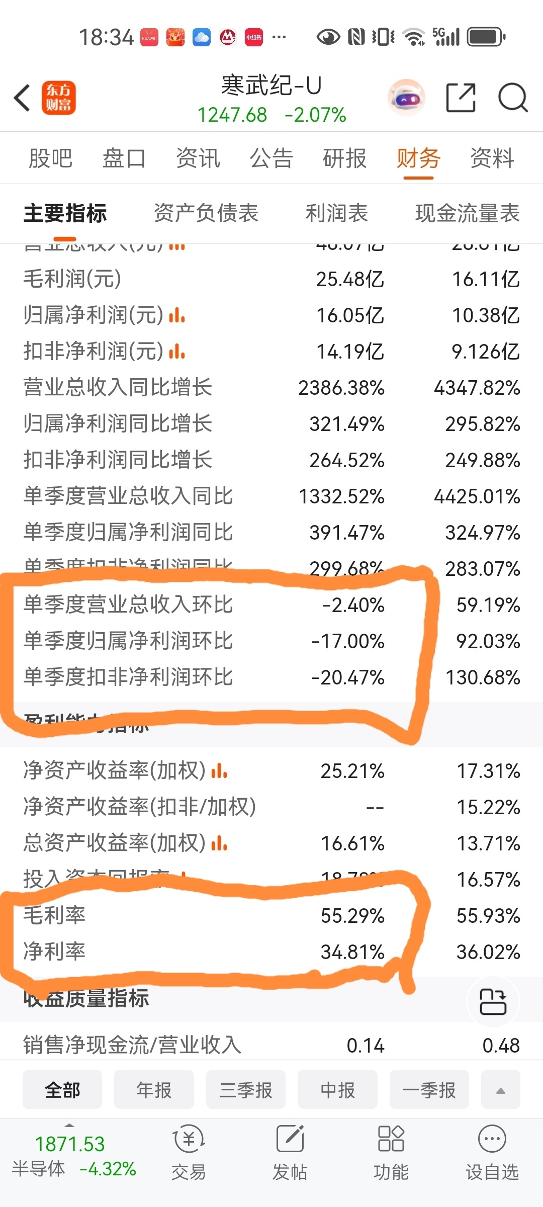 $寒武纪-U(SH688256)$ 第三季度几个重要数据环比很差呀,大大低于预期。