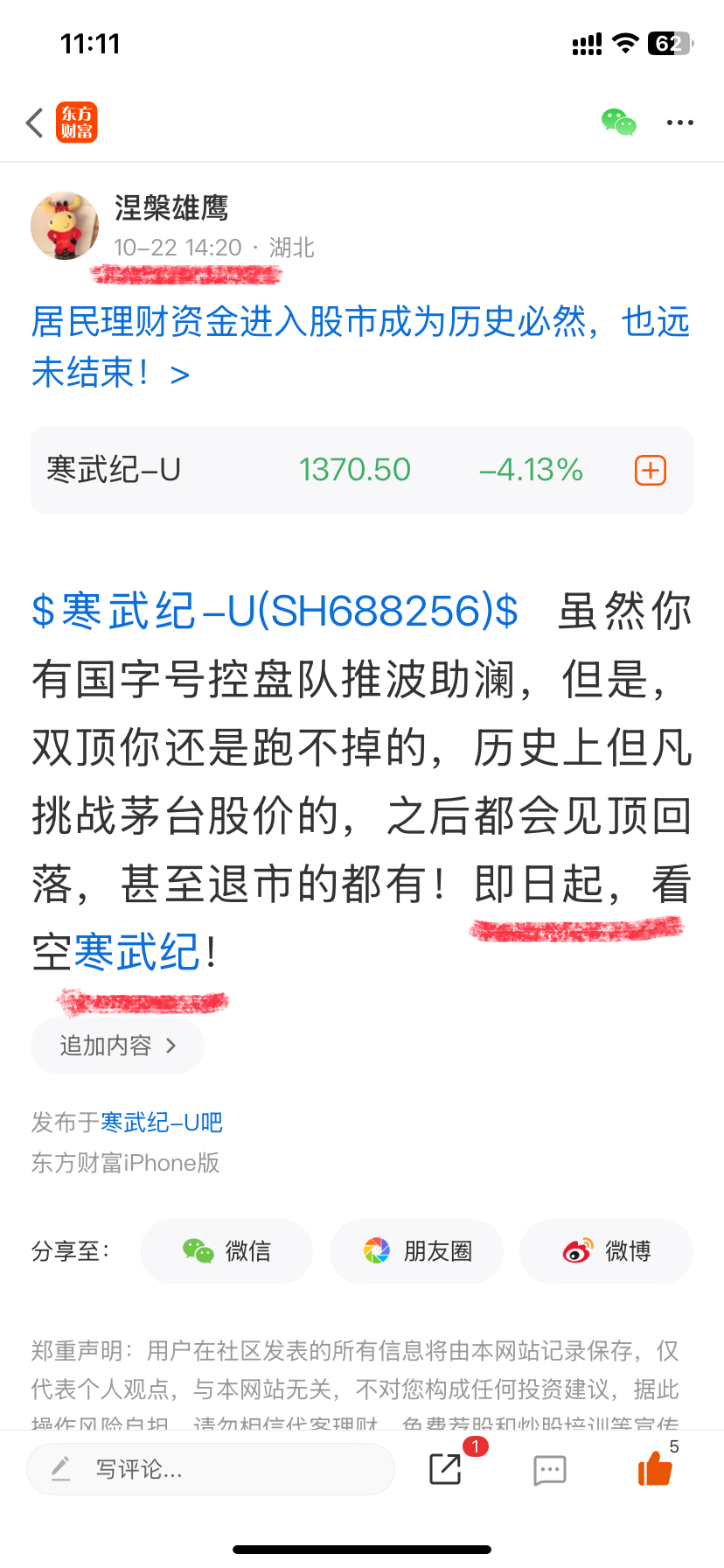 温馨提示: 1.根据《证券法》规定,禁止编造、传播虚假信息或者误导性信息,扰乱证券市场;2.用户在本社区发表的所有资料、言论等仅代表个人观点,与本网站立场无关,不对您构成任何投资建议。用户应基于自己的独立判断,自行决定证券投资并承担相应风险。《东方财富社区管理规定》