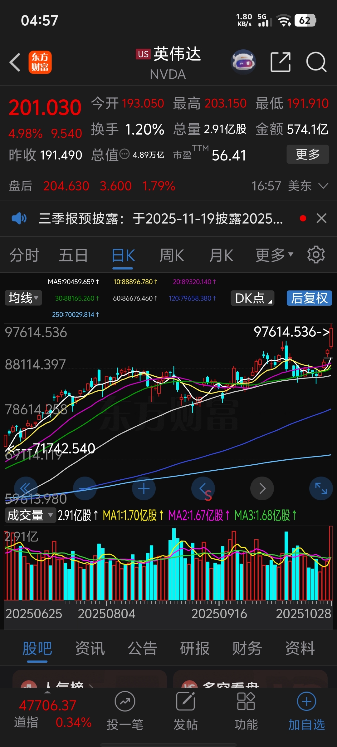 $寒武纪-U(SH688256)$ 我的天,达子市值接近5万亿美元,复权价直逼98000