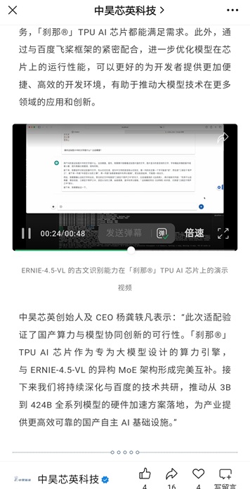 中昊TPU架构视觉语言模型多模态运算能力强大,刹那TPU适配百度文心开源大模型!