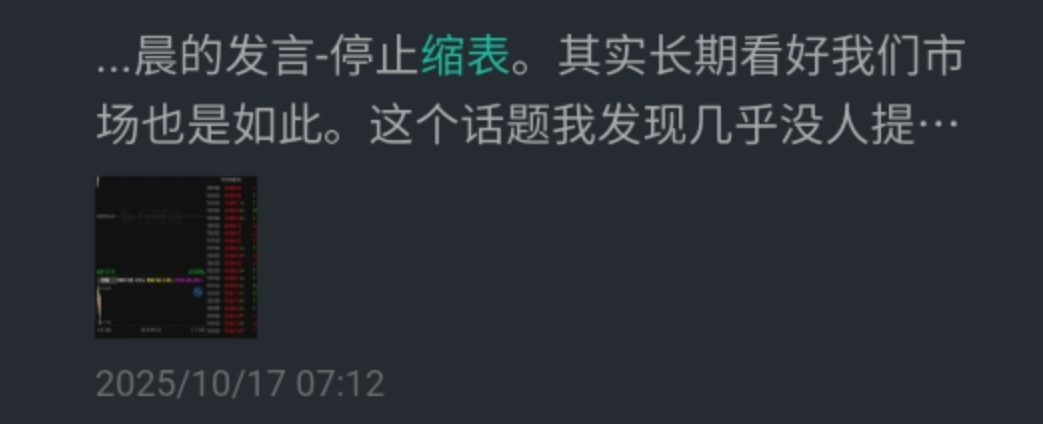1. 先是对于结束缩表,我10.17日的帖子其实已经分享了自己的观点,也说明了对我们市场或者对港股的影响是什么。读懂市场的一个重要基础之一就是先形成对于宏观的理解。