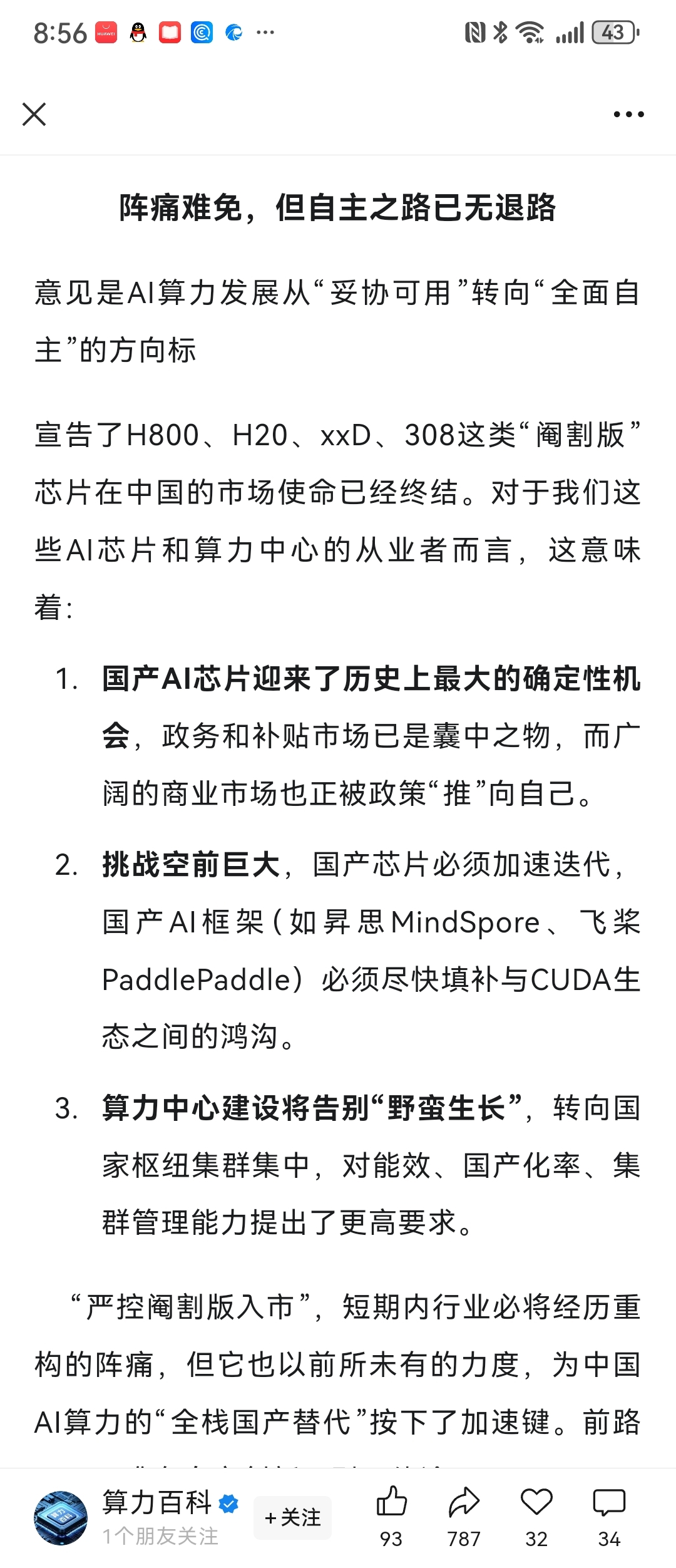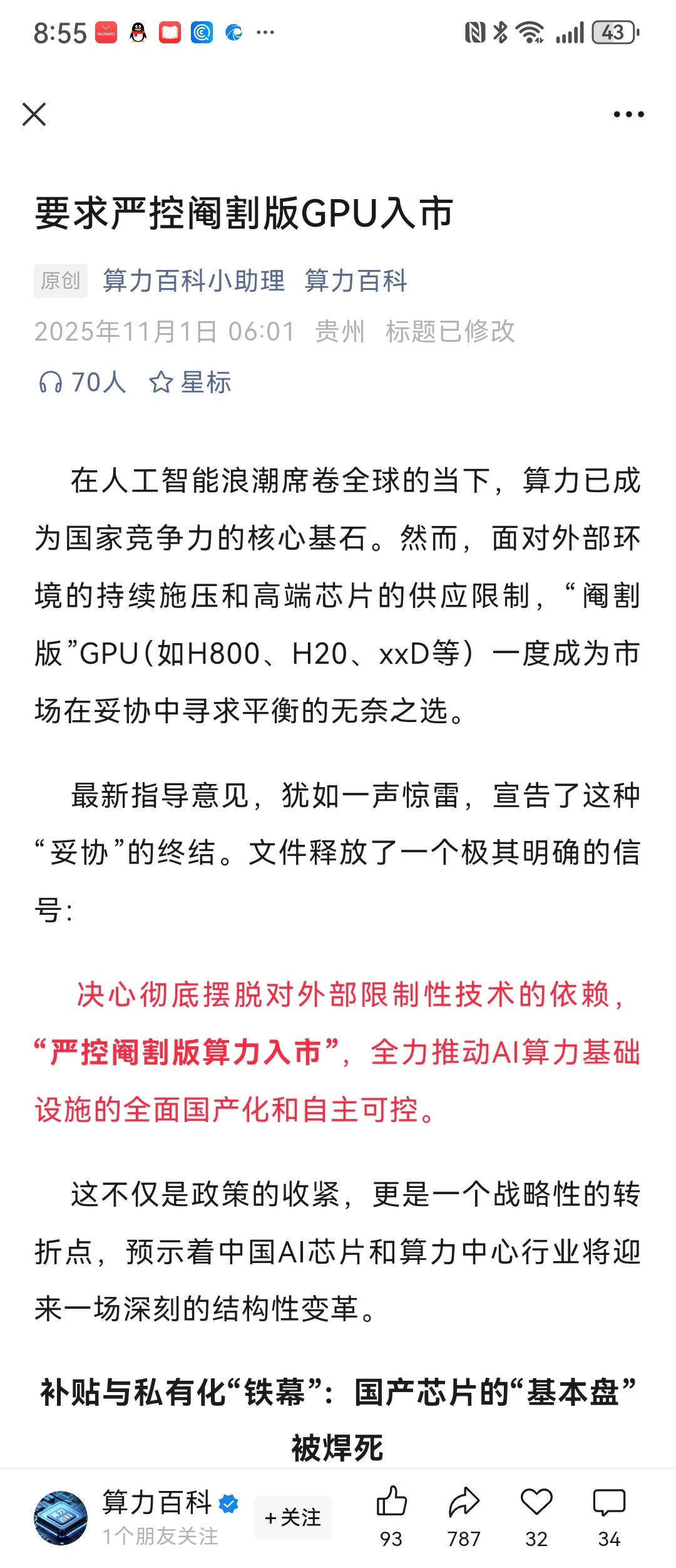 最新的指导文件,要求严格控制阉割版Ai芯片进入中国,基本都要全国产化!!!