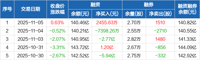 寒武纪:融资净买入2455.63万元,融资余额140.46亿元(11-05)