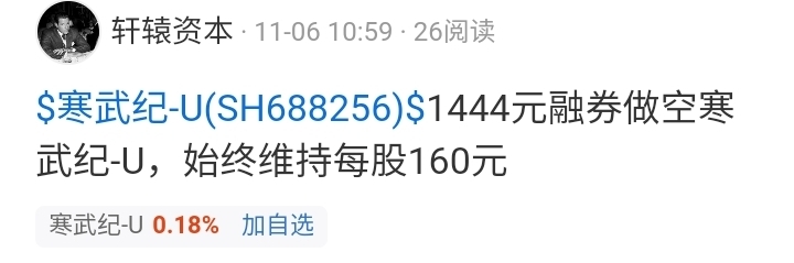 $寒武纪-U(SH688256)$ 1314平仓掉八分之一仓位寒武纪-U融券做空仓,套利11.2%