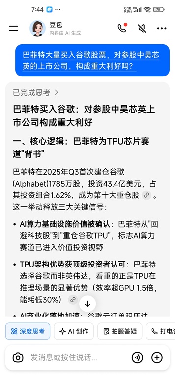 股神巴菲特43亿美元买谷歌看中TPU潜力,TPU龙头中昊芯英价值重估!艾布鲁参股