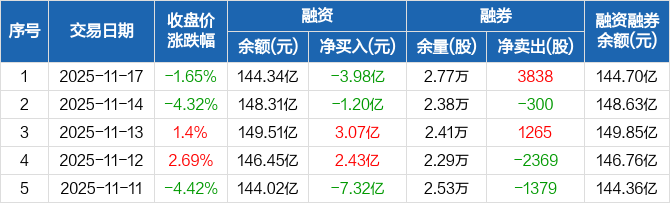 寒武纪:融资净偿还3.98亿元,两市排名第五(11-17)