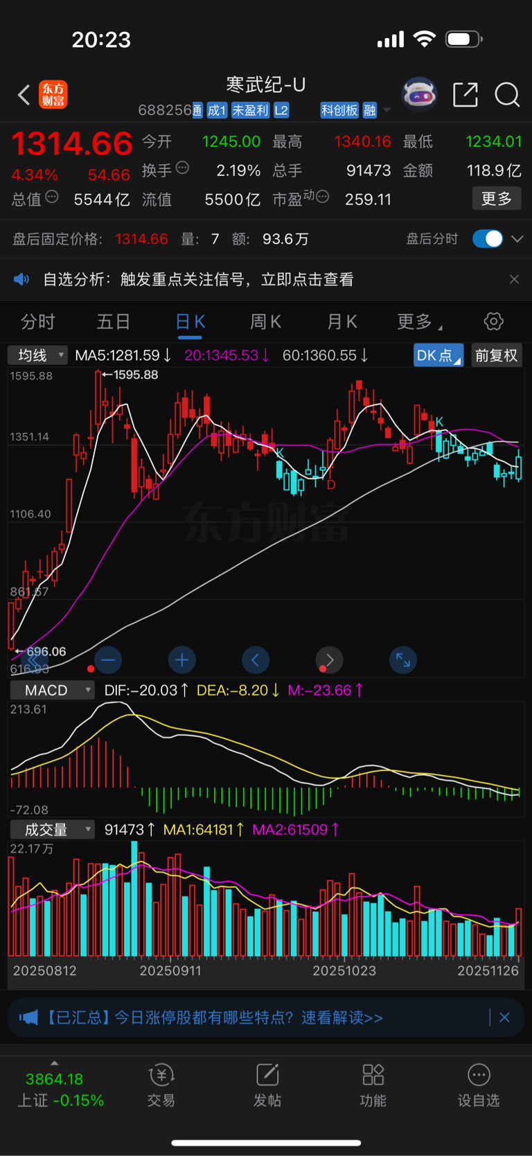 $寒武纪-U(SH688256)$ 套你一生一世六不六