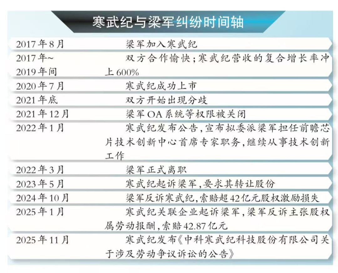 一场涉及43亿元巨额股权激励损失赔偿的案件即将在北京开庭,“对垒”双方是寒武纪与其前高管梁军。