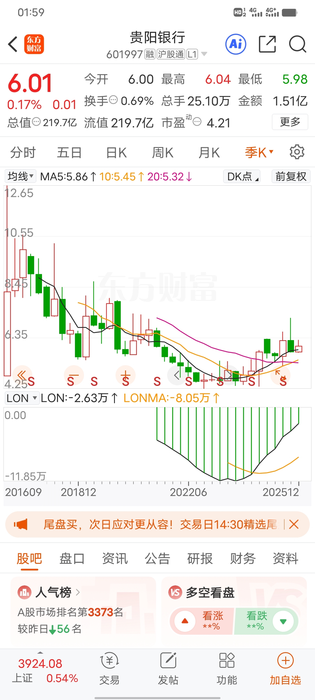 $贵阳银行(SH601997)$ 4.25*2=8.5