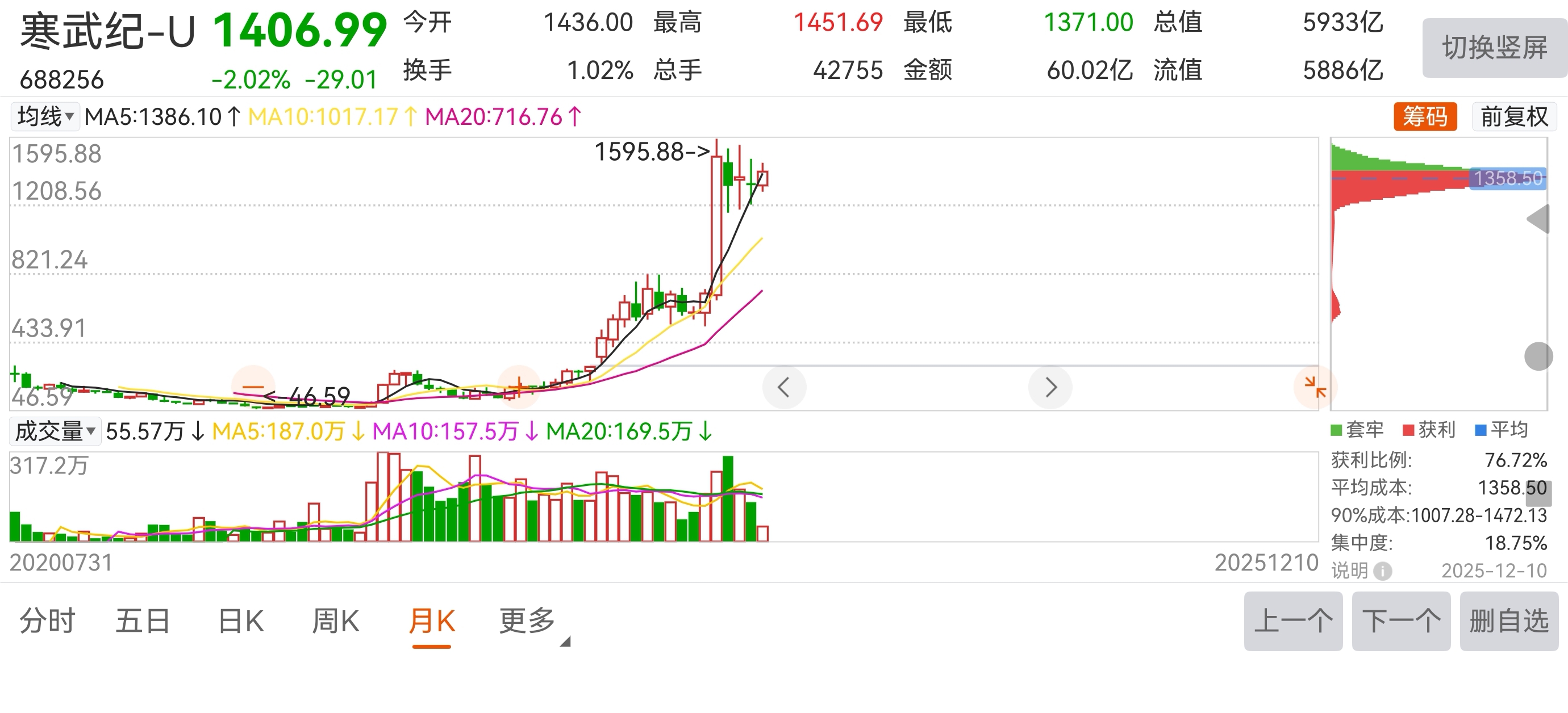 $寒武纪-U(SH688256)$ 发套已经完成,准备大跌了