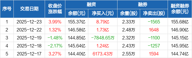 寒武纪:融资净买入8.79亿元,两市排名第三(12-23)