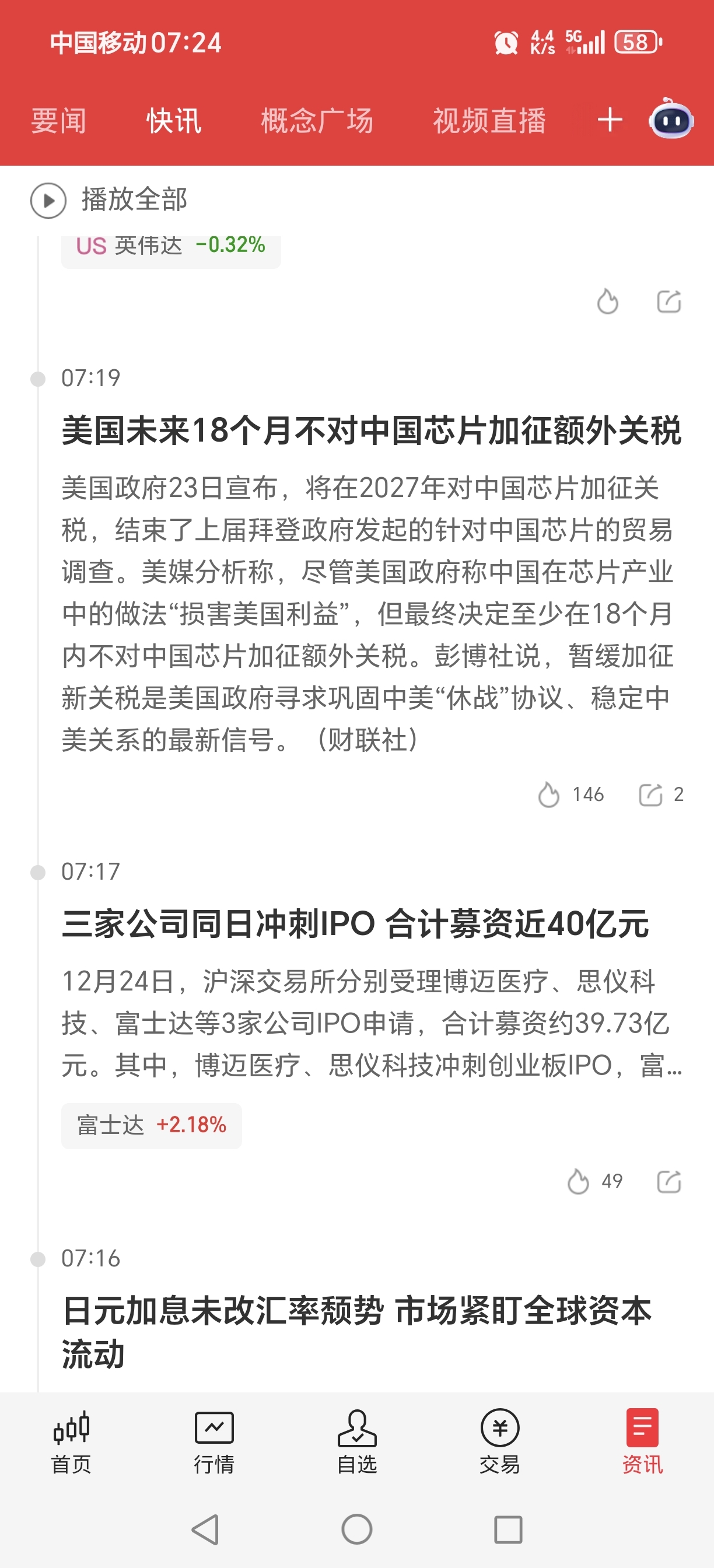 今天的芯片股凉凉了