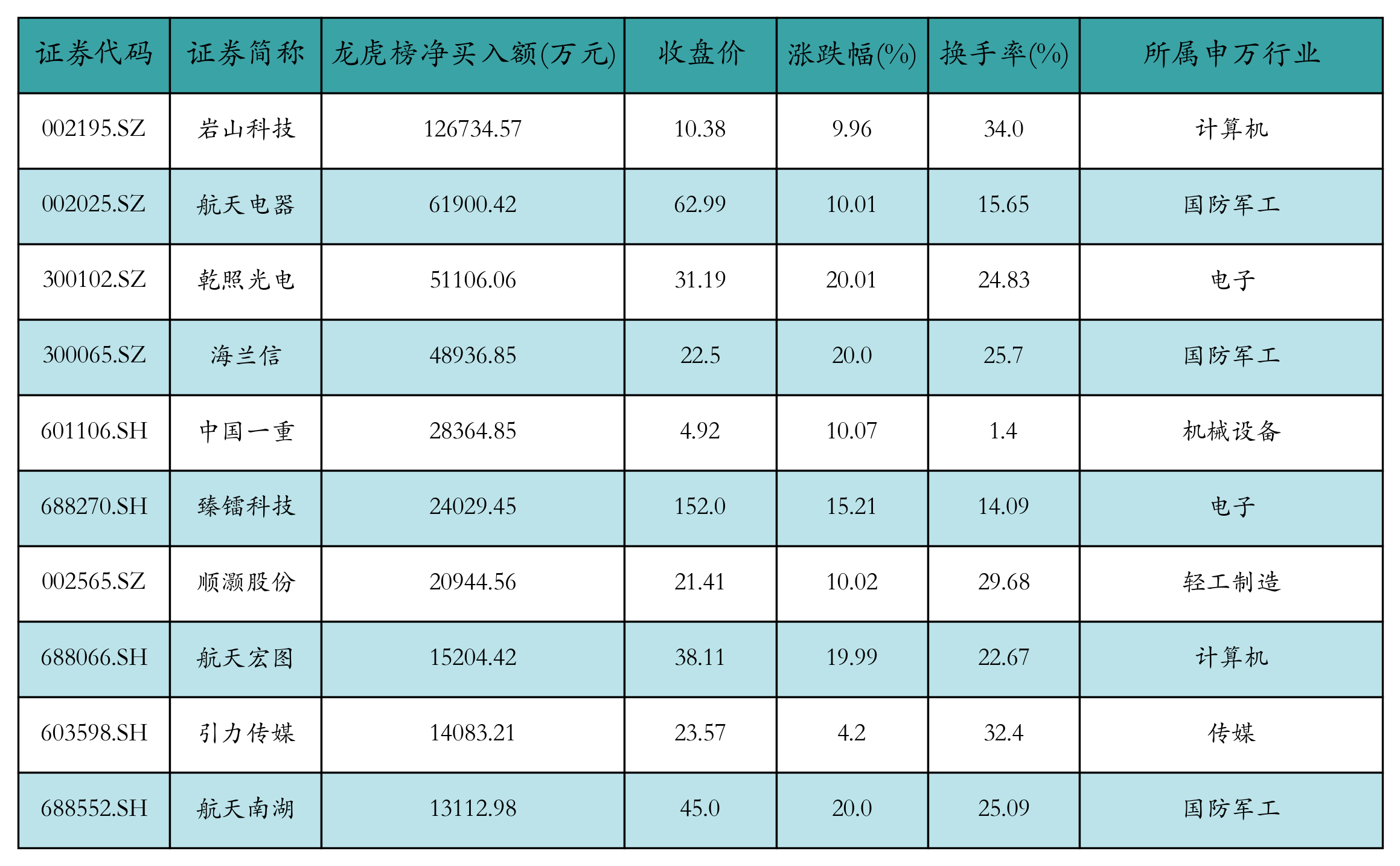 昨日龙虎榜营业部净买入额前10详情见下表: