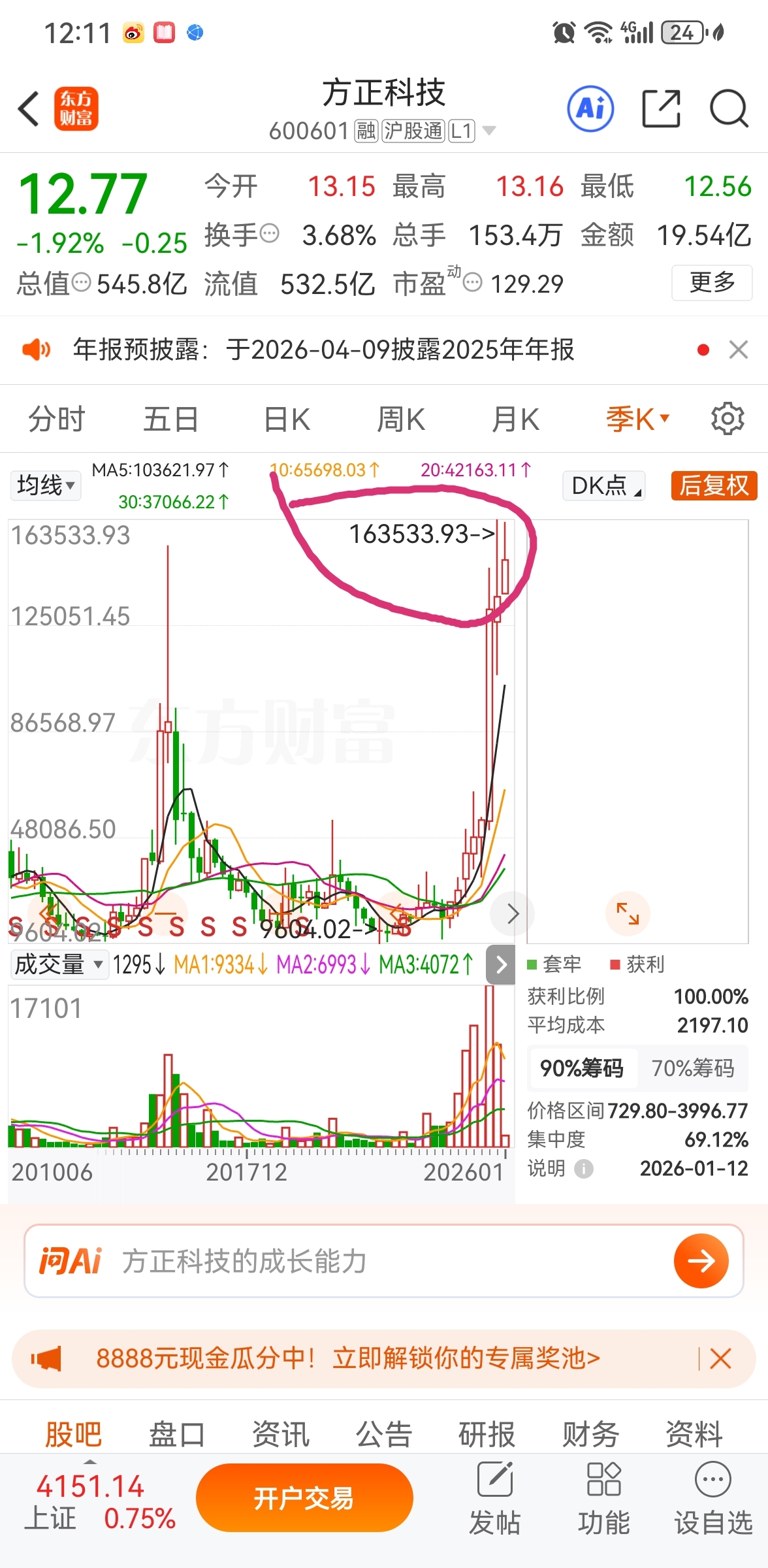 你们不是总拿贵州茅台酒和科技公司比?说科技活不了5~10年吗?方正科技上市36年