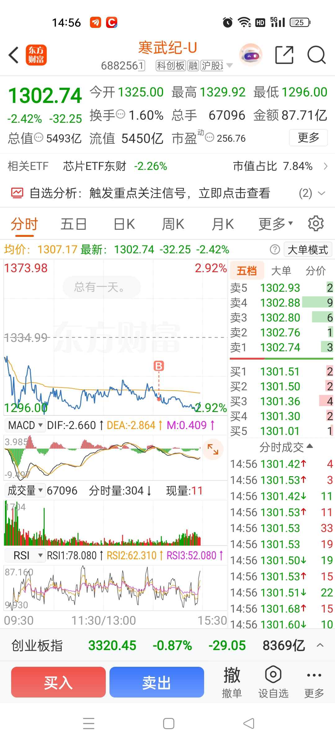 $寒武纪-U(SH688256)$ 妈的,买了三次都亏钱卖了,今天手痒又买了,等不到尾盘,怕没得买似的