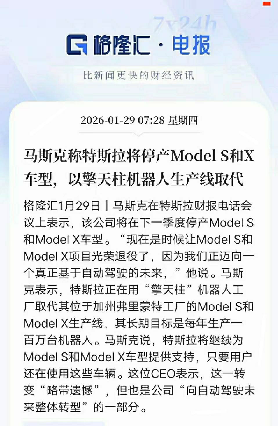 .两大超级重磅,马斯克称特斯拉将停产ModelS和X车型,以机器人生产线取代!C