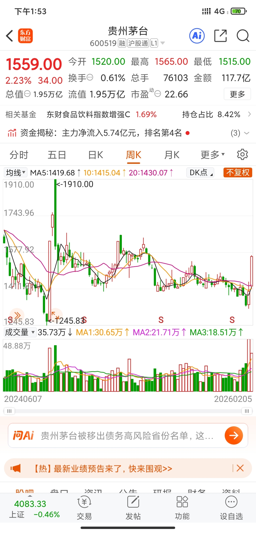 茅台曾经2600,也腰斩。科技炒作也结束了。机构也会回到低估值,白酒,医药。