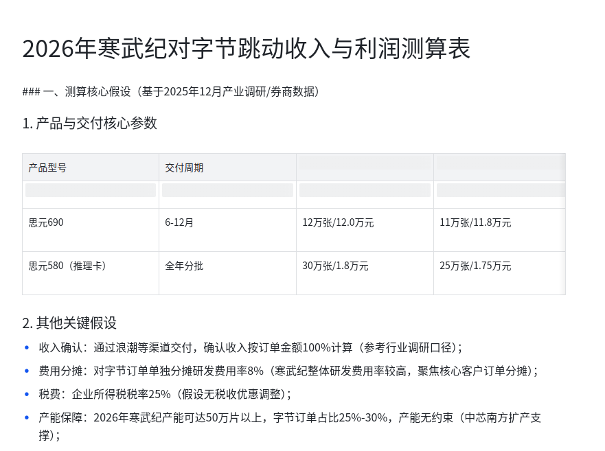字节跳动26年对寒武纪的贡献利润