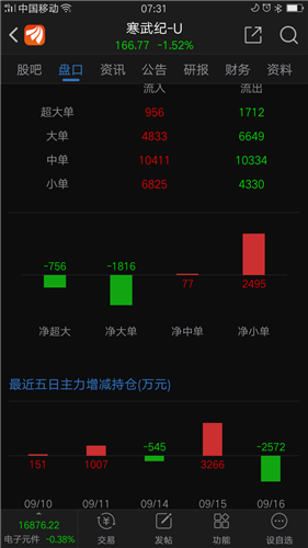 三、主力资金流向从流出一边倒转向进出交替。入的概率大于出的概率,资金面利于多方