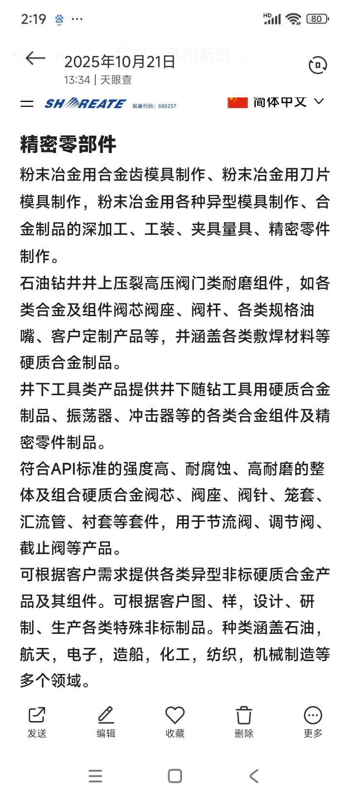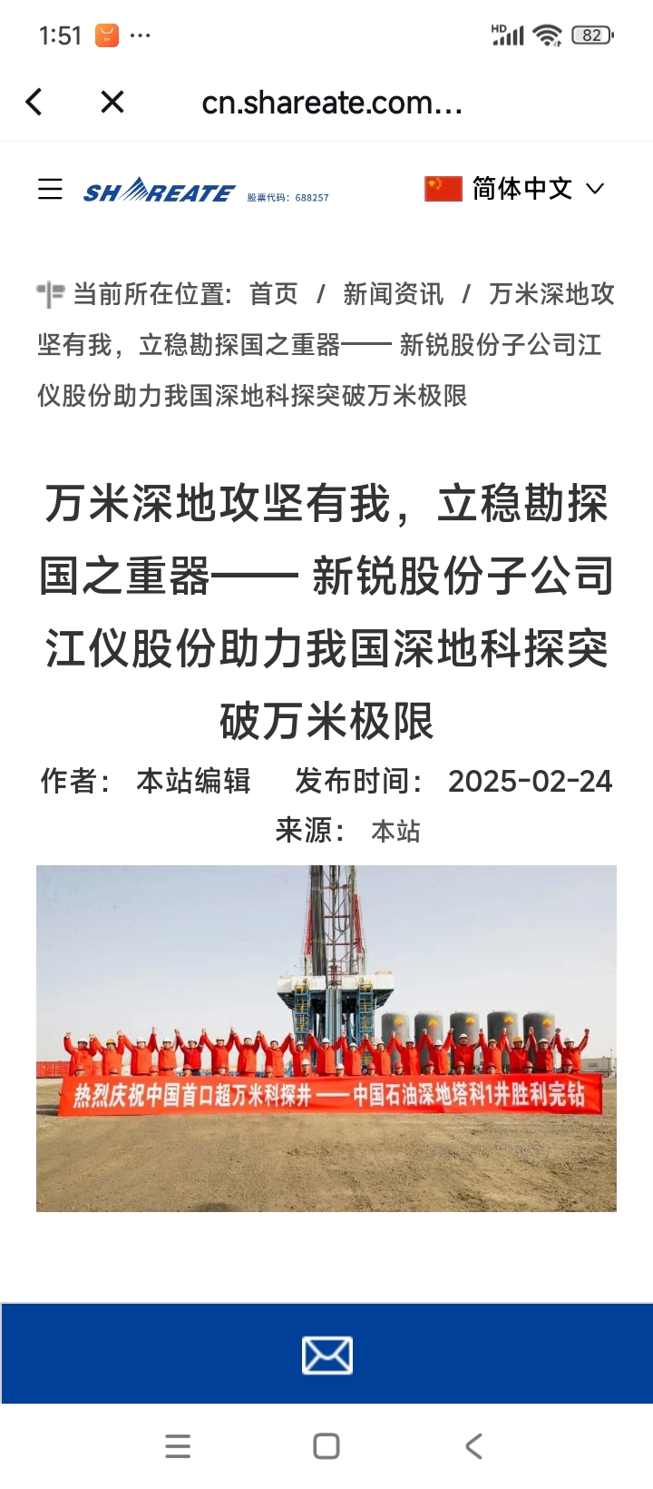 $新锐股份(SH688257)$ $黄河旋风(SH600172)$ $德石股份(SZ301158)$ $石化机械(SZ000852)$ $神开股份(SZ002278)万米深地攻坚有我,立稳勘探国之重器—— 新锐股份子公司江仪股份助力我国深地科探突破万米极限,钻头等凿岩工具,聚晶金刚石复合(齿)片及刀具用于石油钻探,地矿刀块用于盾构设备配件,超细碳化钨颗粒,电子级进冲压模具专用材料