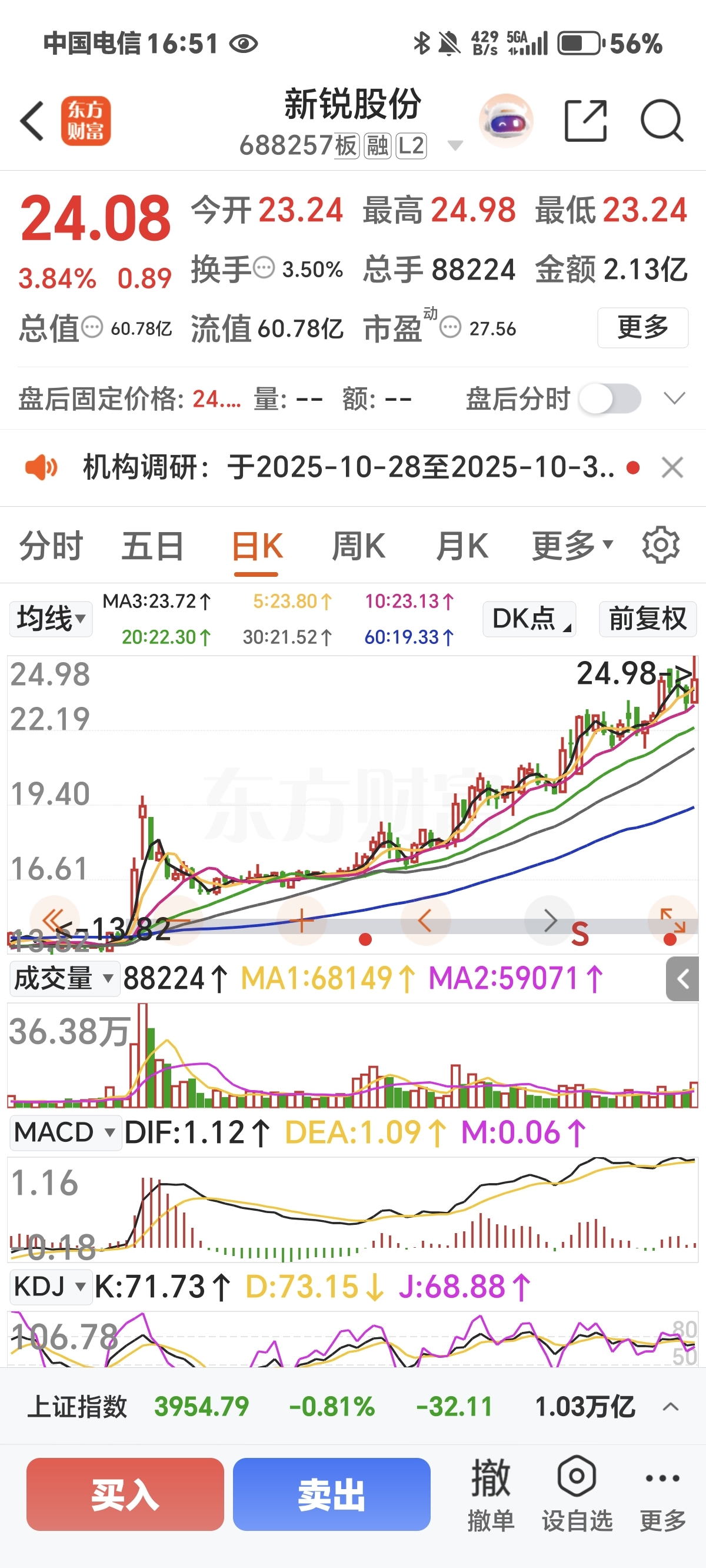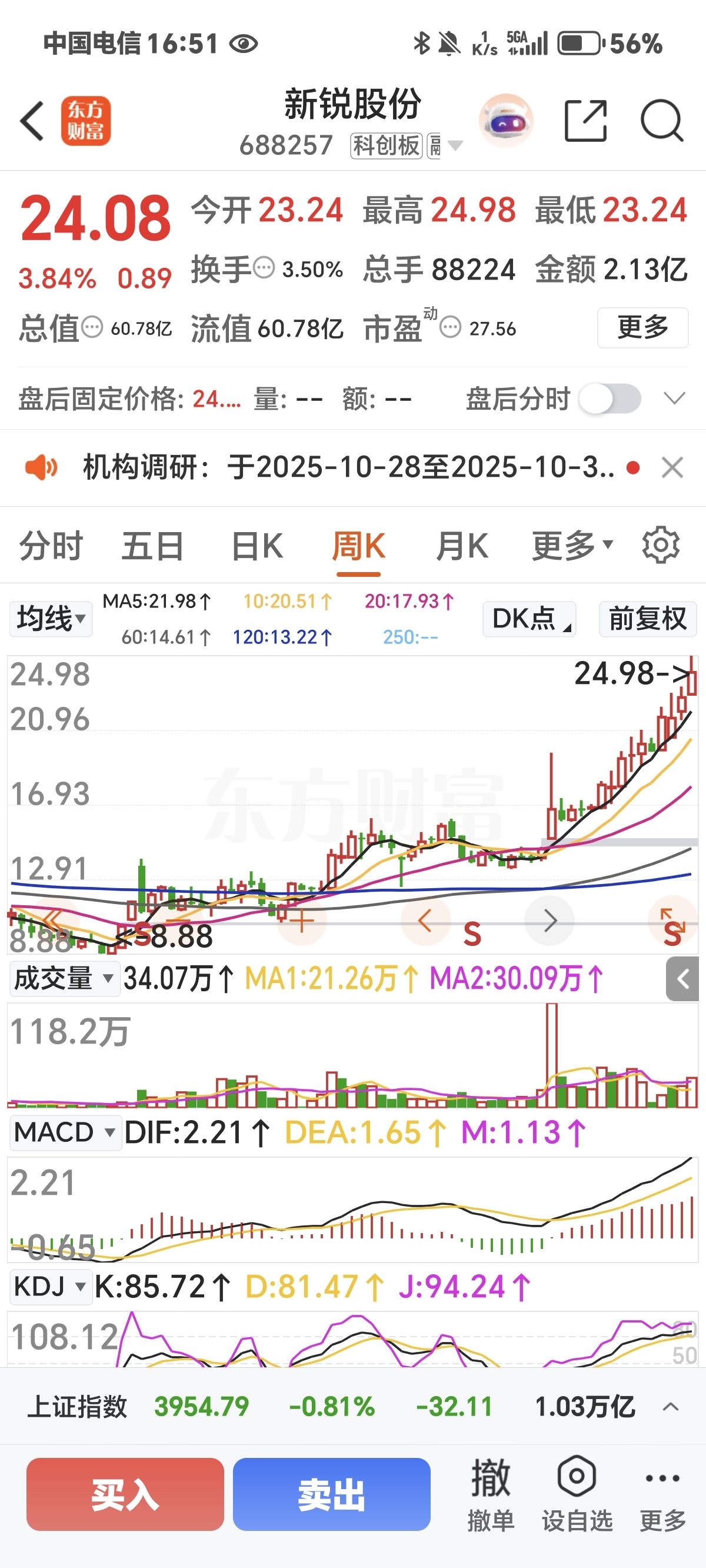 期待11月份开始新锐的走势能更好!日K线能走出周K线一样的顺畅形态。