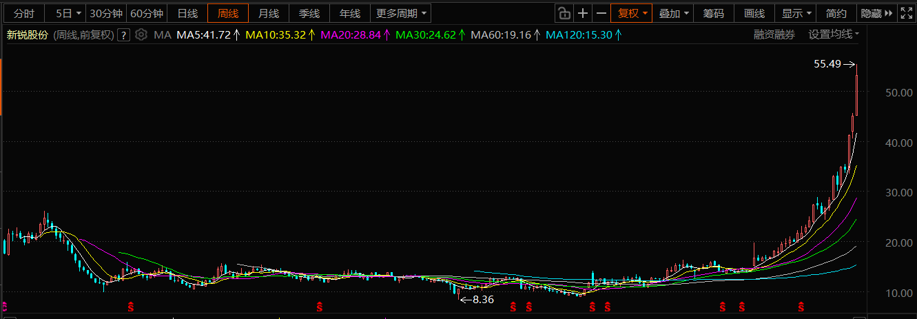新锐股份 53.19 一波流牛市运行中