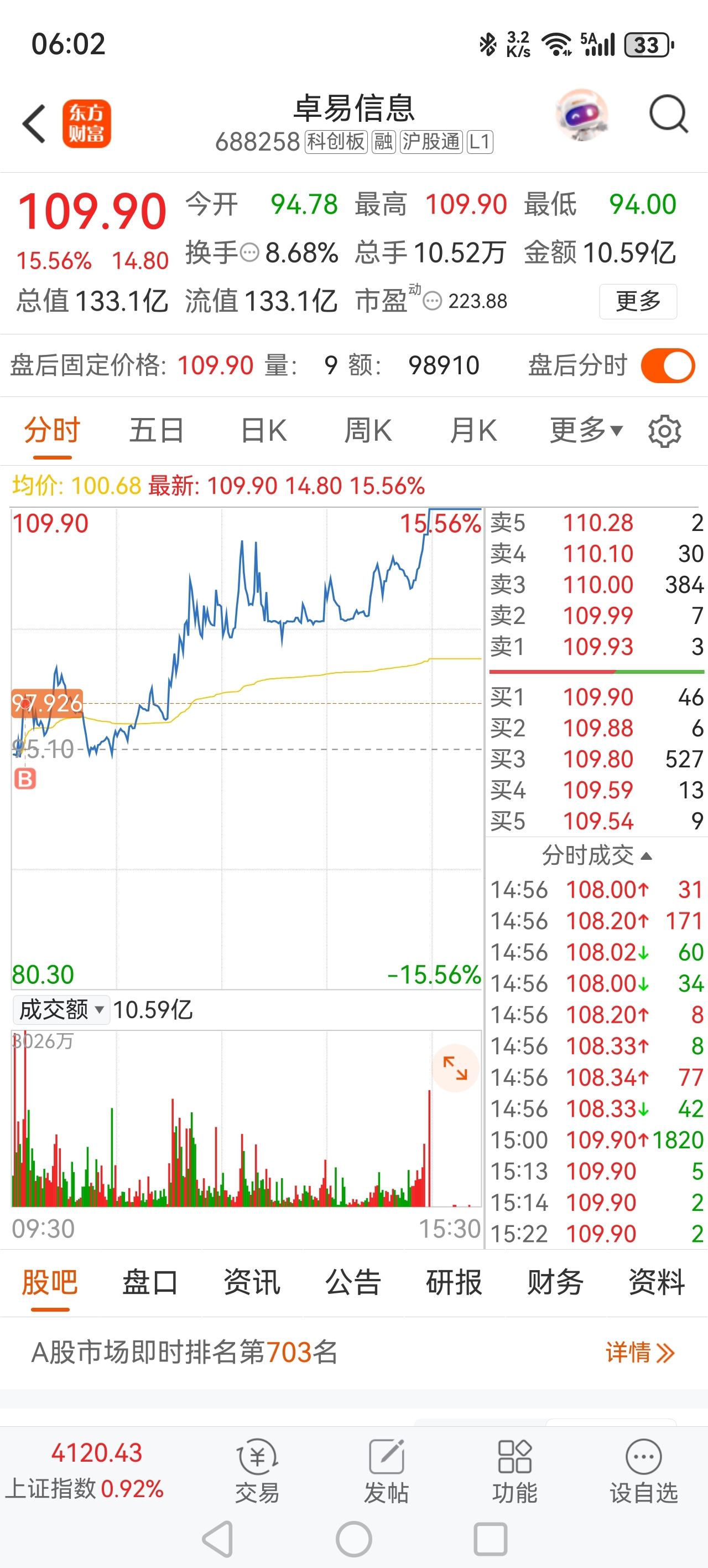 $卓易信息(SH688258)$ 买入后跌到绿想补不敢补,眼睁睁看他上去