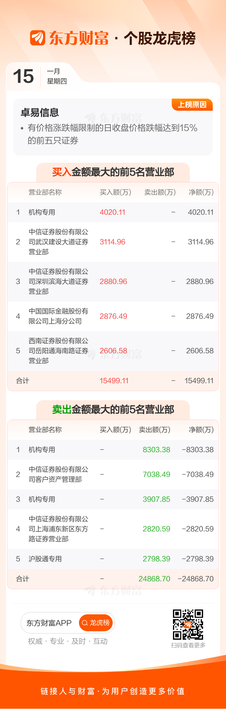 卓易信息(688258)龙虎榜数据(01-15)