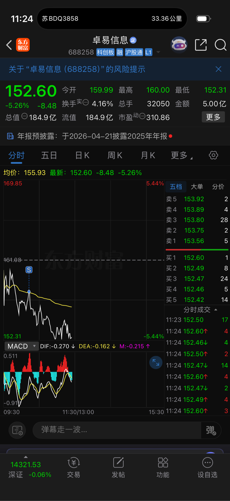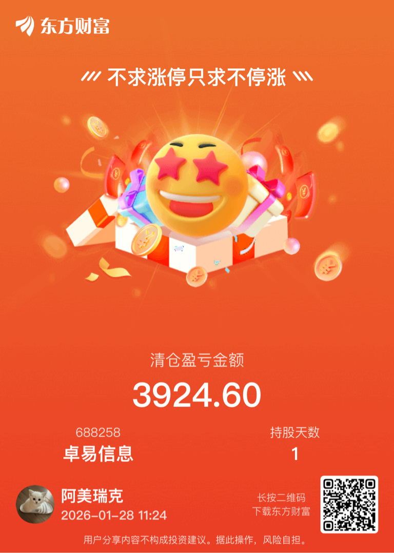 今日清仓,卓易信息,昨天买,今天卖,赚了5个点