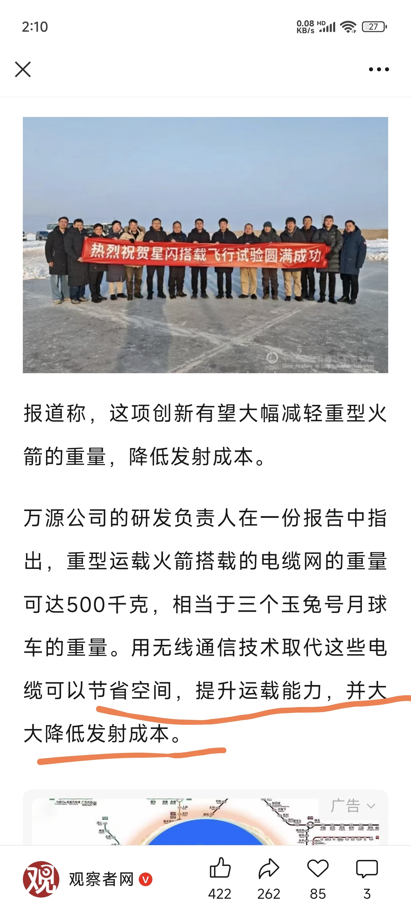 $创耀科技(SH688259)$ 航天星闪!新题材!重型运载火箭上庞大的电缆网重量可达500千克,采用航天星闪技术后可将这部分电缆重量降至零。以长征五号运载火箭仪器舱传感器部分为例,仅减掉通信电缆就能减重近60%;长征七号甲火箭末级箭上设备数量将减少40%多,重量减少一半。平均减重50%,发射直接成本减少30%