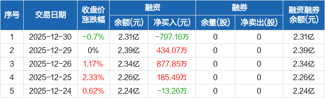 昀冢科技:融资净偿还797.16万元,融资余额2.31亿元(12-30)