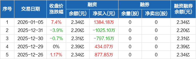 昀冢科技:融资净买入1384.18万元,融资余额2.34亿元(01-05)