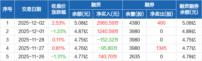 东微半导:融资净买入2065.59万元,融资余额5.08亿元(12-02)