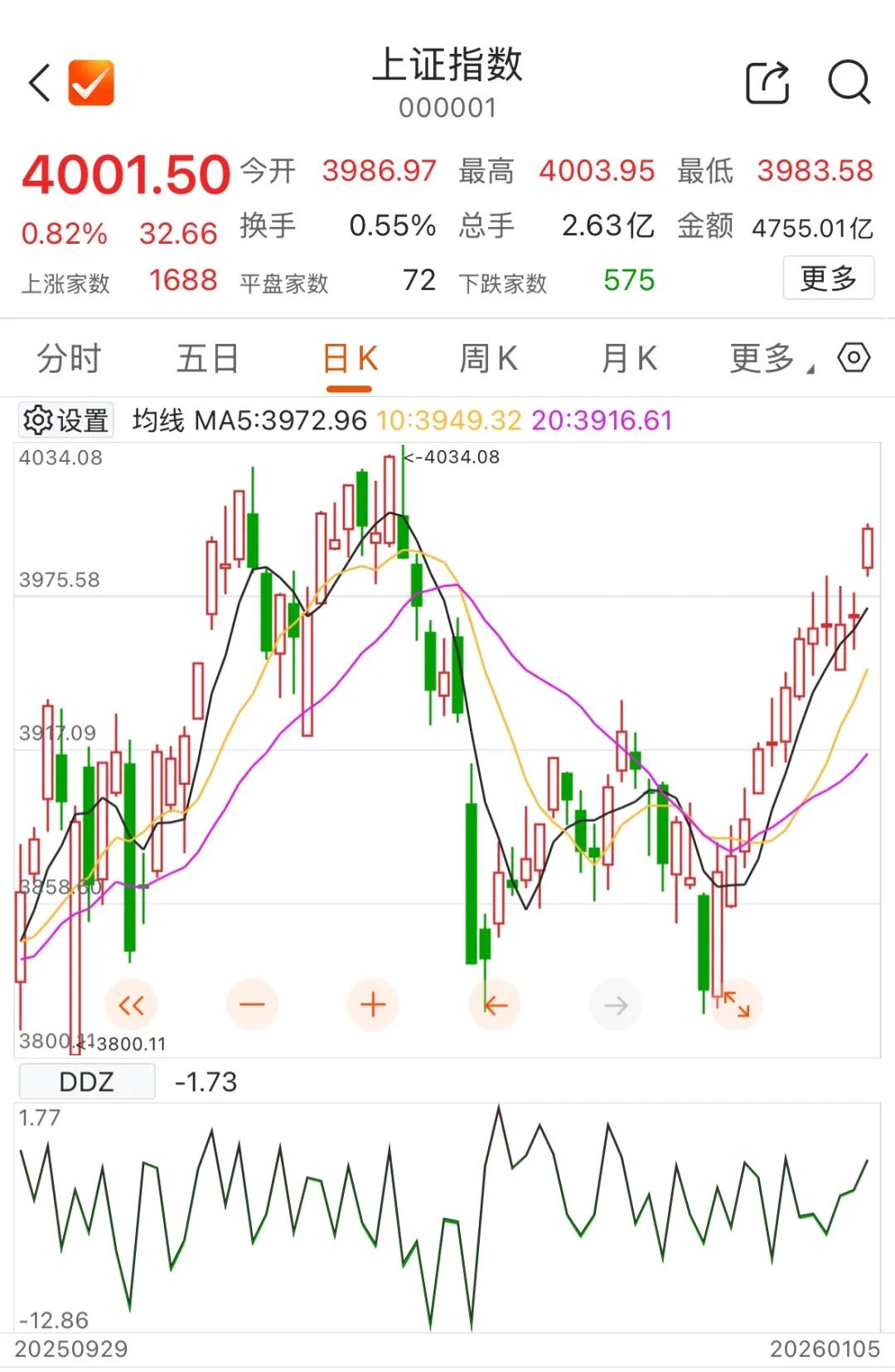 1月5日早盘,A股三大指数集体高开。截至发稿,上证指数时隔34个交易日盘中重回4000点。