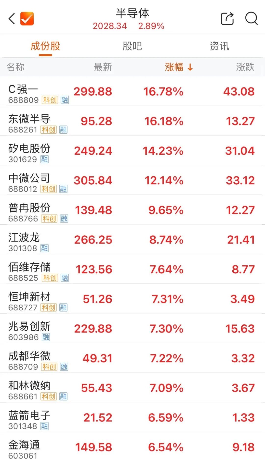 半导体产业链震荡拉升,设备、材料、晶圆代工方向均表现不俗。截至发稿,东微半导、矽电股份、中微公司涨超10%,华虹公司、中芯国际、拓荆科技、华海清科等跟涨。