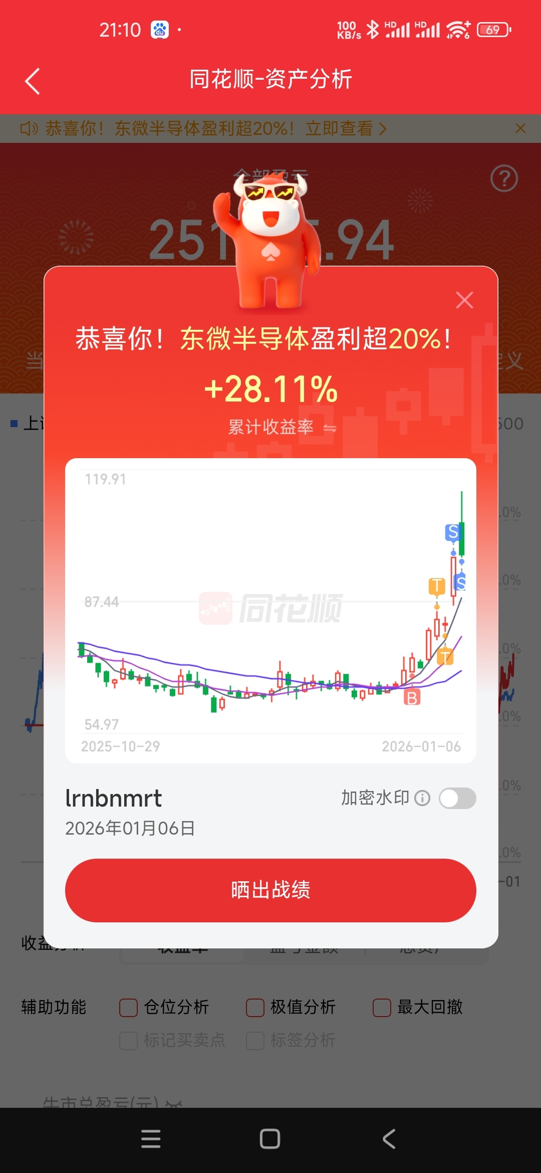 $东微半导(SH688261)$ 吃了两次,在这个东微半岛回本了,谢谢东微威猛