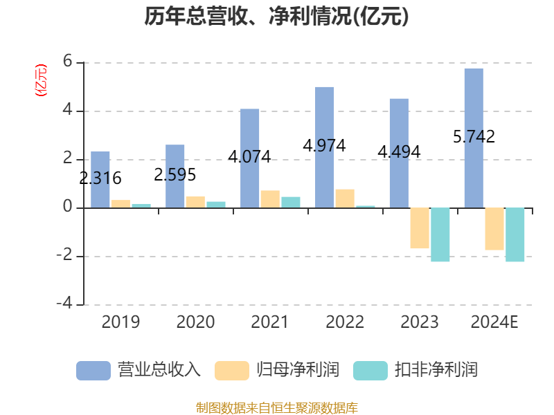 中证智能财讯国芯科技(688262)2月25日晚间披露2024年业绩快报,公司实现营业收入5.74亿元,同比增长27.78%;归母净利润亏损1.76亿元,上年同期亏损1.69亿元;扣非净利润亏损2.24亿元,上年同期亏损2.24亿元;基本每股收益-0.53元,加权平均净资产收益率为-7.62%。以最新收盘价计算,市净率(LF)约4.54倍,市销率(TTM)约19.78倍。
