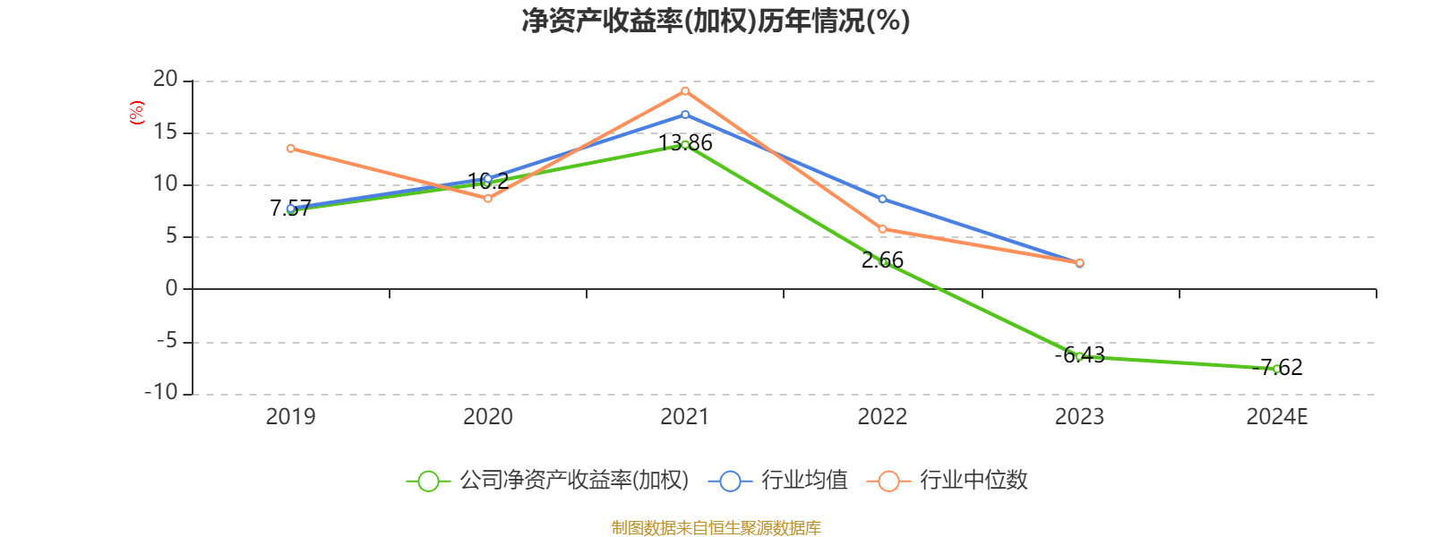 数据显示,2024年公司加权平均净资产收益率为-7.62%,较上年同期下降1.19个百分点。