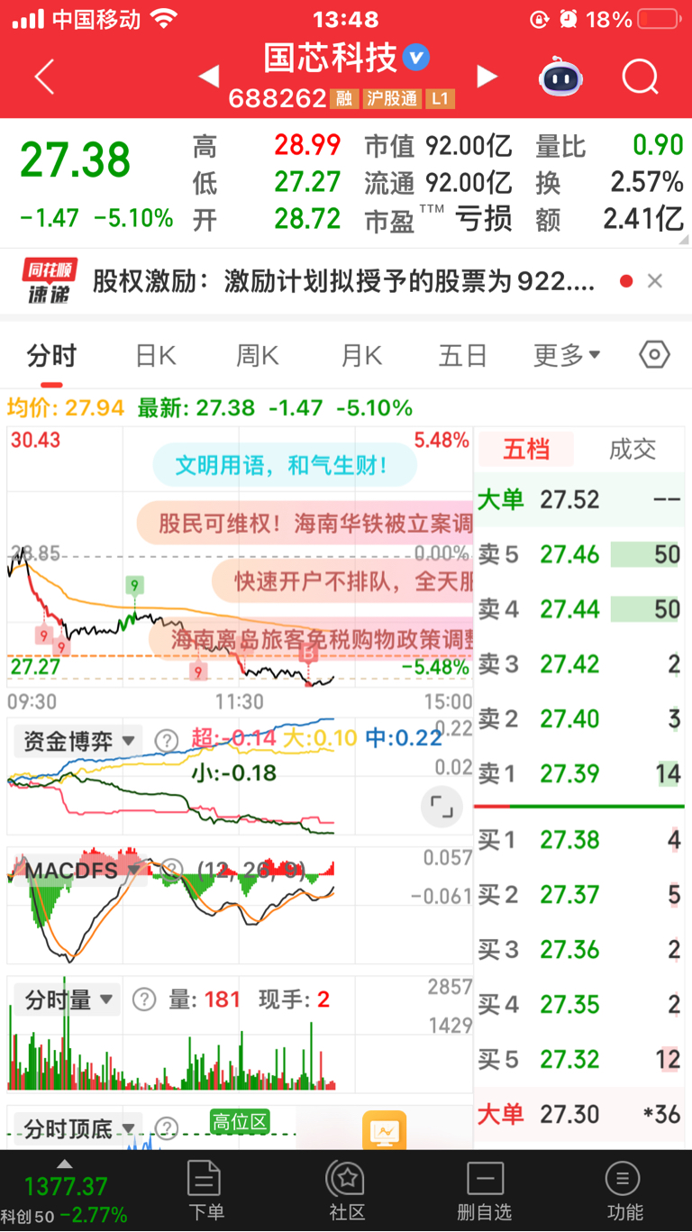 $国芯科技(SH688262)$ 又坐过山车,今天加仓,不信这么邪!