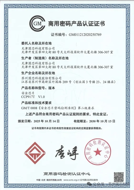 $国芯科技(SH688262)$ 认证书下来了