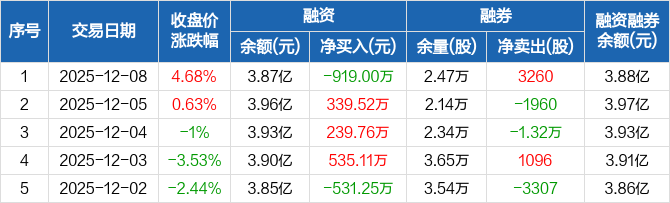 国芯科技:融资净偿还919万元,融资余额3.87亿元(12-08)