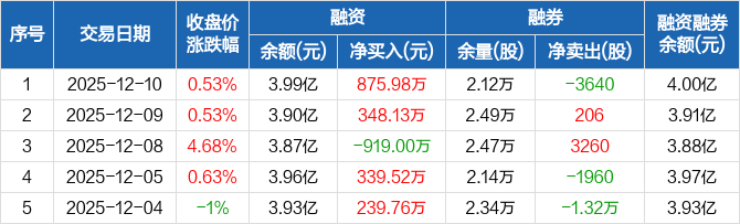 国芯科技:融资净买入875.98万元,融资余额3.99亿元(12-10)