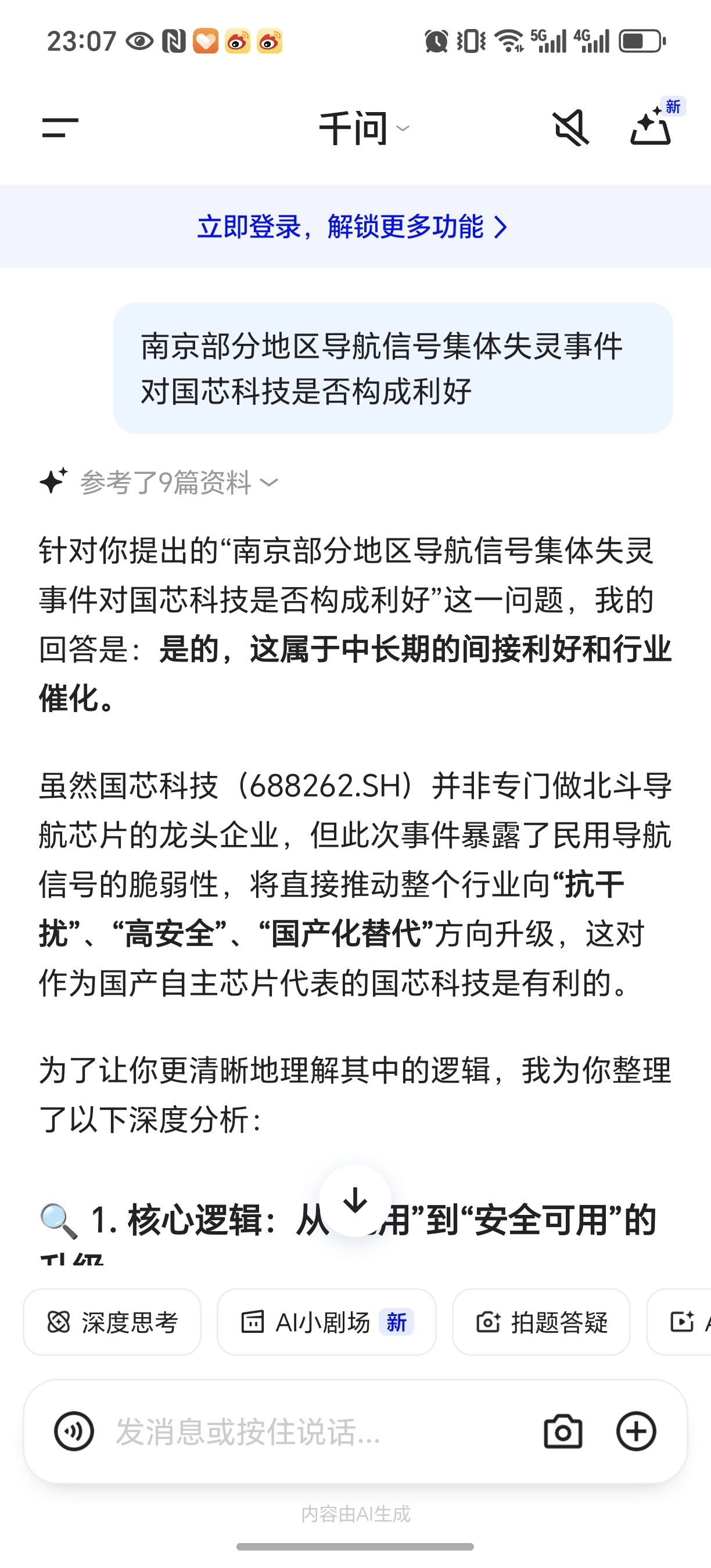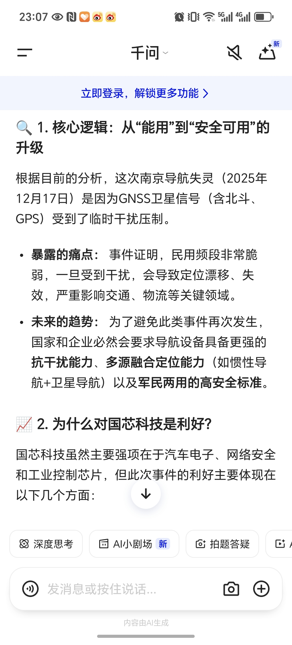 $国芯科技(SH688262)$ 南京部分地区导航信号集体失灵事件对国芯科技是否构成利好