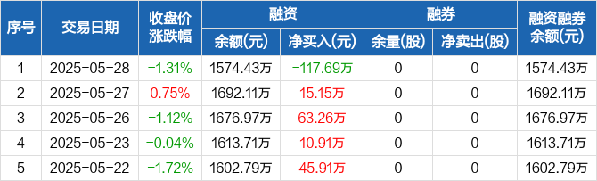 南模生物:融资净偿还117.69万元,融资余额1574.43万元(05-28)