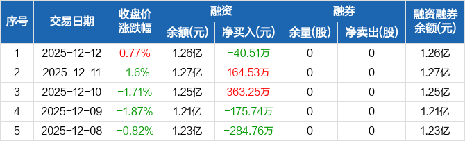 中触媒:融资净偿还40.51万元,融资余额1.26亿元(12-12)