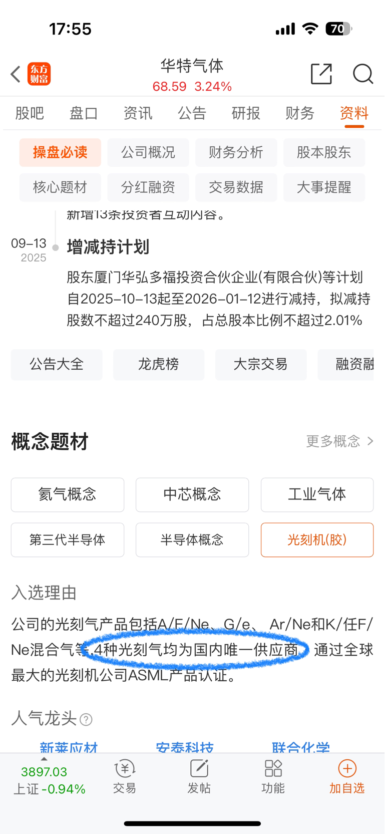 $华特气体(SH688268)$ 国内唯一是什么概念?还有第二家吗?
